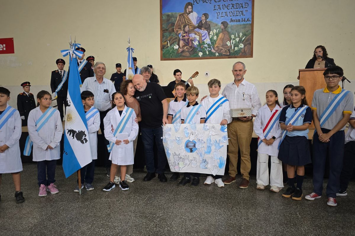 Por cuestiones climáticas, la ceremonia se realizó en el Instituto Santísima Trinidad y finalizó con la colocación de ofrendas en el monumento a los caídos.