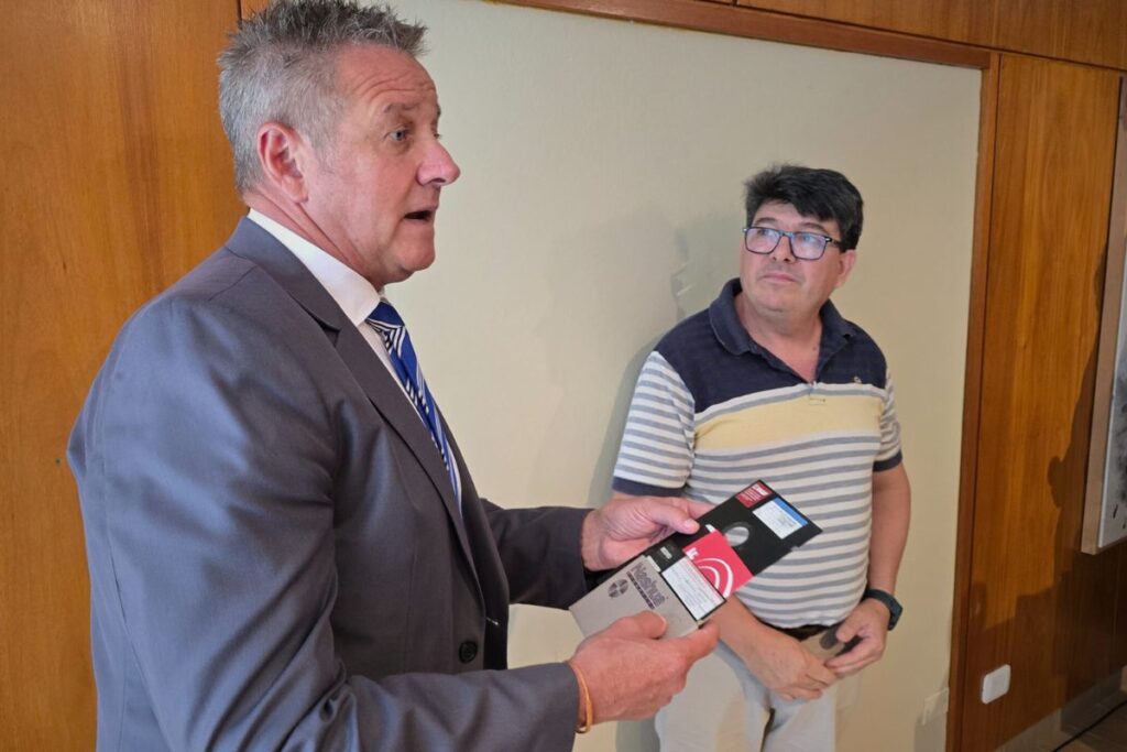 Como gesto de alto valor histórico, Julio Dalmasso hizo entrega al intendente municipal de los disquetes originales en los que fue redactada la Carta Orgánica, preservando así una parte esencial de la memoria institucional de la ciudad.